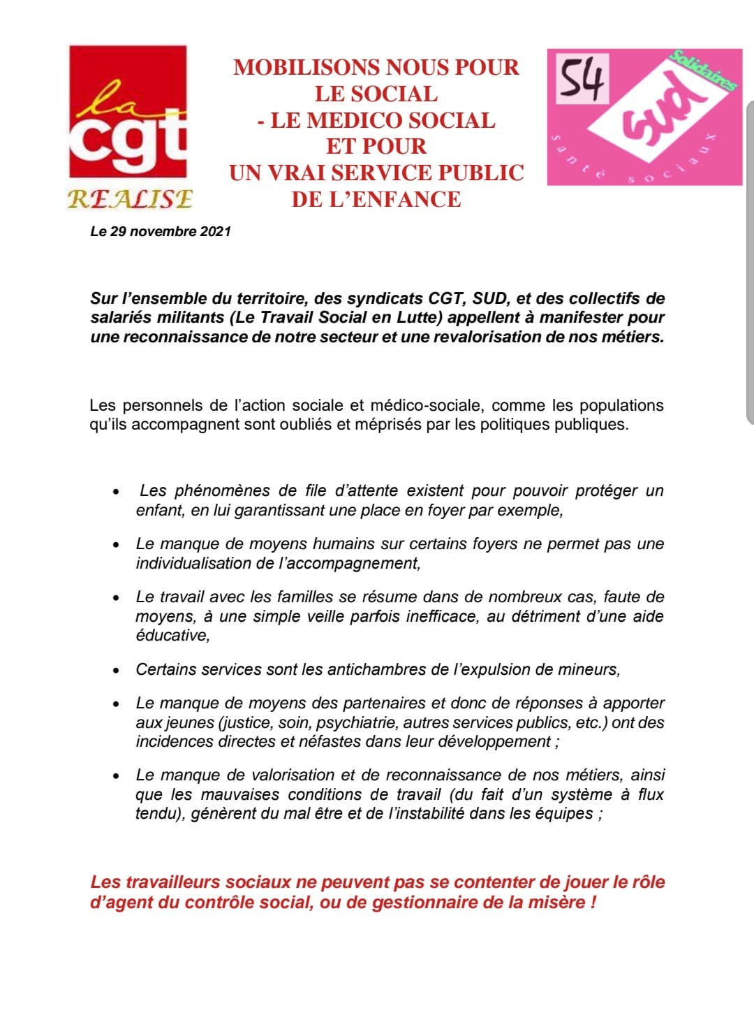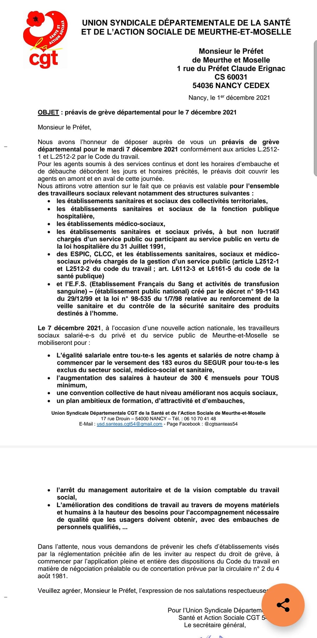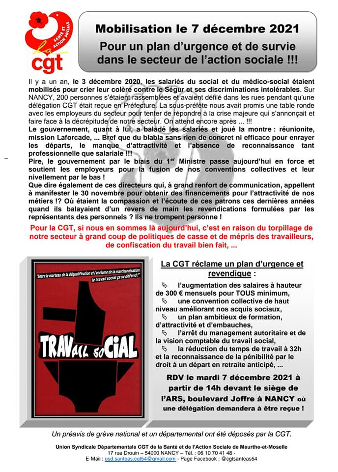[Mobilisation 7 décembre 2021] CGT Santé Action Sociale 54