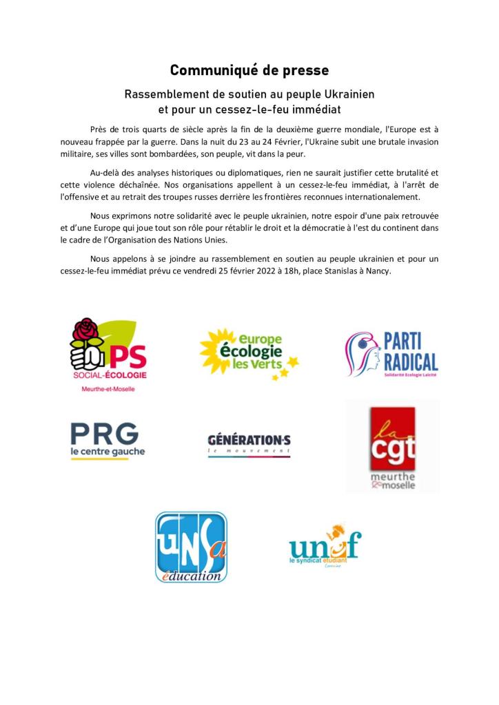 Nous appelons à se joindre au #rassemblement en soutien au peuple ukrainien et pour un cessez-le-feu immédiat prévu ce vendredi 25 février 2022 à 18h, place Stanislas à #Nancy.