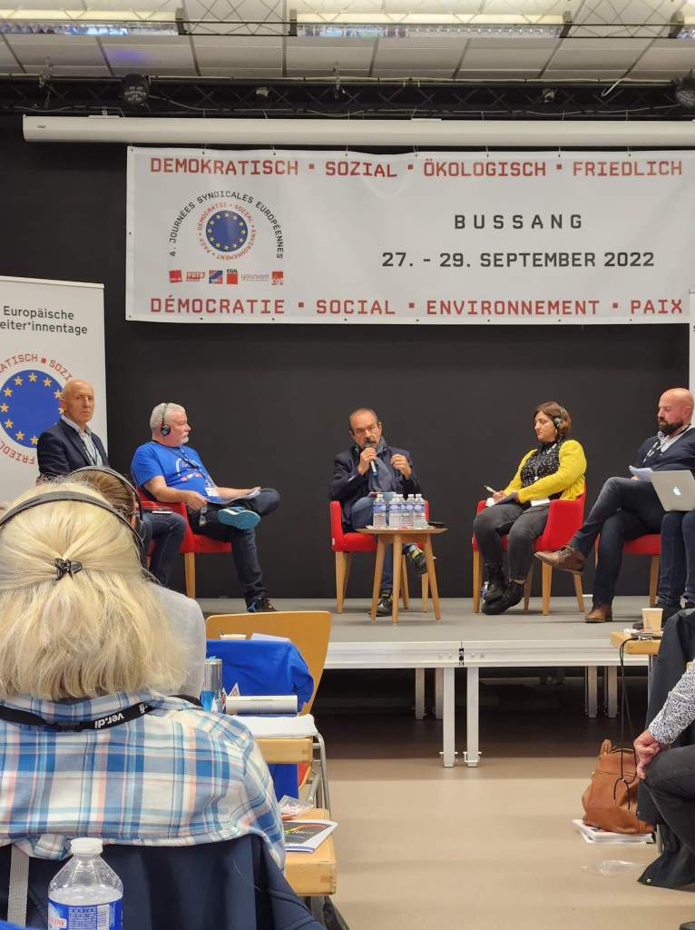▪︎ Table ronde sur la Charte Européenne avec Philippe Martinez (CGT), Ralf Nix (Verdi), Jean François Tamellini (FGTB), Olzem Demirel (Députée Européenne Die Linke) et Dominique Potier (Député Socialiste de Meurthe-et-Moselle).