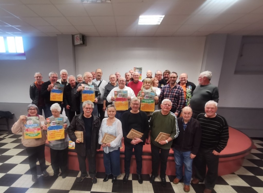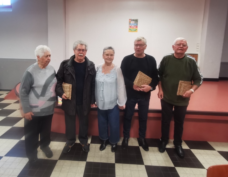 Camarades sortants pour lesquels un cadeau de remerciement leur a été offert. Ce sont les camarades suivants dans l’ordre de la photo : Hélène Delville, Jean Billon, Renée Sponem, Jean-Jacques Gueza, Camille Soudier.