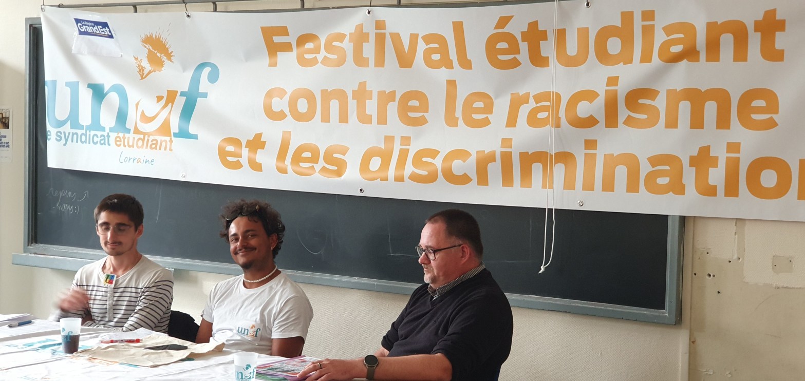 Dans le cadre du Festival étudiant contre le racisme et les discriminations organisé par l’UNEF, participation de Julien Hézard, secrétaire général de l’UD CGT de Meurthe et Moselle à la table ronde UNEF, #CGT, FSU portant sur « Le #syndicat, un outil de lutte contre les discriminations ? « #NoPasaran#udcgt54#stopracisme#luttecontrelesdiscriminations#meurtheetmoselle